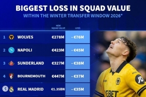 體育資訊2月10日訊 各大聯(lián)賽冬季轉(zhuǎn)會(huì)窗基本都已關(guān)閉,《轉(zhuǎn)會(huì)市場(chǎng)》也統(tǒng)計(jì)了經(jīng)歷這個(gè)冬窗之后的球隊(duì)身價(jià)下跌最多情況,狼隊(duì)居首。
