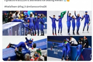 意大利短道速滑隊奪得米蘭冬奧會混合接力賽冠軍,國米官方社媒轉(zhuǎn)發(fā)新聞,并寫道:“輝煌的藍金之光 ,祝賀意大利短道速滑隊在混合接力項目中勇奪桂冠,阿里安娜·豐塔納創(chuàng)造歷史,摘得個人第十二枚奧運獎牌!”
