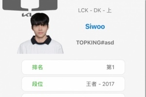 體育資訊2月11日訊 根據(jù)韓服排位小程序顯示,DK上單Siwoo登上韓服第一,Peyz掉到第三。
