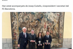 巴薩女足球員邦馬蒂獲得2023年最佳女子運(yùn)動(dòng)員獎(jiǎng),她在2023年贏得女足世界杯冠軍和金球獎(jiǎng)。巴薩俱樂(lè)部副主席庫(kù)貝利斯陪同出席頒獎(jiǎng)典禮。