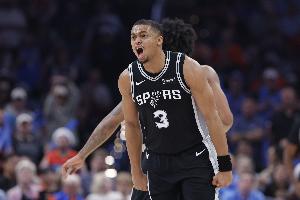 此役馬刺球員凱爾登·約翰遜表現(xiàn)出色,在球隊(duì)落后時(shí)挺身而出連續(xù)拿分帶隊(duì)逆轉(zhuǎn),打了29分鐘13投8中,三分6中2、罰球3中3拿到21分6籃板2助攻1搶斷,正負(fù)值+22。
