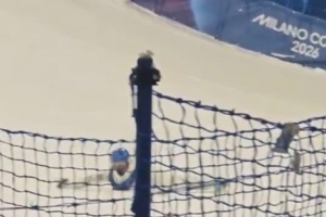 體育資訊2月13日訊 在大跳臺(tái)訓(xùn)練的第二日,谷愛(ài)凌最后一跳時(shí)不慎摔倒。