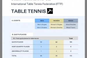 洛杉磯奧運(yùn)會(huì)乒乓球資格分配方案:各協(xié)會(huì)男女單打最多各2名參賽