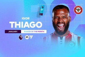 體育資訊2月13日訊 英超官方消息,布倫特福德前鋒伊戈爾·蒂亞戈成為首位獲得多次英超月度最佳獎項的巴西球員。