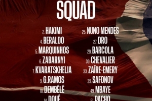 前鋒:7-克瓦拉茨赫利亞、9-貢薩洛·拉莫斯、10-登貝萊、14-杜埃、29-巴爾科拉、49-姆巴耶