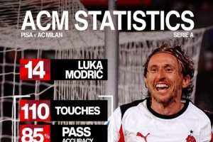 體育資訊2月14日訊 意甲第25輪比賽,莫德里奇破門,米蘭客場(chǎng)2-1擊敗比薩,米蘭官方社媒曬出莫德里奇本場(chǎng)比賽的數(shù)據(jù),配文:“大師風(fēng)范?!?/p>
