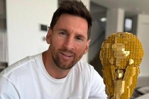 體育資訊02月14日訊 梅西今日更新社媒,曬出國際足聯(lián)與樂高集團合作推出的樂高版大力神杯。