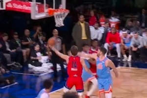 體育資訊2月14日訊 NBA全明星新秀賽決賽,卡特隊(duì)25-24險勝安東尼隊(duì),比賽中前CBA球員、解說嘉賓曾令旭談到了卡特隊(duì)布澤利斯用腳步單打克林根的一個進(jìn)球。