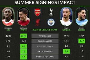 體育資訊2月14日訊 whoscored對(duì)比了英超四大豪門在去年夏天的攻擊型中場(chǎng)引援,維爾茨和謝爾基表現(xiàn)更好。