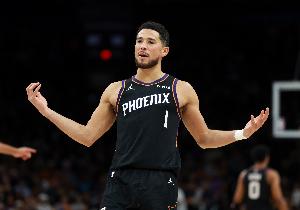 “布克壓軸登場,開局10連中!超遠(yuǎn)也進(jìn)了,45度角全中,眼看要封神……結(jié)果花球筐只進(jìn)了2個(gè),27分,差2分惜?。?/p>