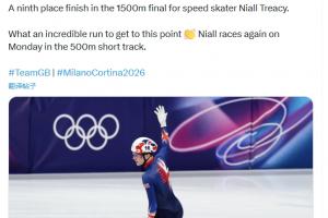 英國奧運(yùn)隊的官推賽后寫道:“速度滑冰選手尼爾·特雷西在1500米決賽中獲得第九名。能夠走到這一步,已經(jīng)是相當(dāng)了不起的成就了?? 尼爾將在周一的500米短道比賽中再次亮相。”