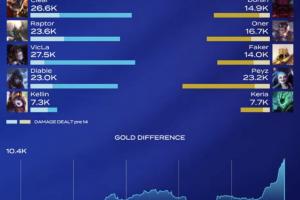 體育資訊2月15日訊 今日LCK季后賽上,T1首局不敵BFX,賽后數據面板顯示Faker沙皇全場輸出倒數第三,僅比兩位輔助高!