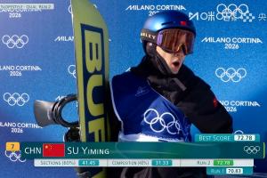 體育資訊02月15日訊 米蘭冬奧會單板滑雪男子坡面障礙技巧預(yù)賽第2輪,中國選手蘇翊鳴獲得72.78分,超過他此前第一輪的成績70.83分,目前暫列第7位。