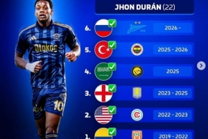 杜蘭(22歲):澤尼特(俄羅斯)、費內(nèi)巴切(土耳其)、利雅得勝利(沙特)、阿斯頓維拉(英格蘭)、芝加哥火焰(美國)、恩維加多(哥倫比亞)