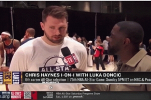 體育資訊2月16日訊 今天,湖人球星盧卡·東契奇在接受采訪時突然被旁邊的文班亞馬打斷。