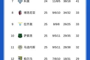 【意甲完整積分榜】