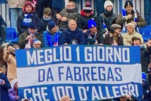 體育資訊2月16日訊 在科莫1-2輸給佛羅倫薩的意甲聯(lián)賽中,科莫球迷在看臺拉橫幅支持法布雷加斯,并嘲諷阿萊格里。