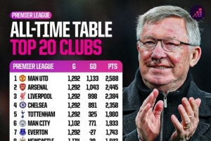 英超歷史總積分排名(前20名):