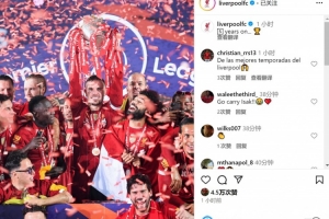 2019-2020賽季,利物浦提前7輪鎖定英超冠軍,在2020年7月22日主場對陣切爾西的比賽之后,利物浦球員們捧起隊(duì)史首座英超冠軍獎(jiǎng)杯。