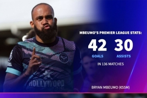數(shù)據(jù)統(tǒng)計(jì)顯示,姆貝莫136場英超貢獻(xiàn)42球30助攻,庫尼亞82場英超貢獻(xiàn)29球13助攻。