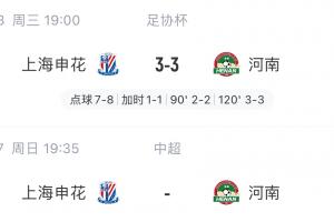 體育資訊07月23日訊 今日足協(xié)杯1/4決賽,申花點(diǎn)球大戰(zhàn)10-11慘遭河南淘汰,本周日雙方將在中超第18輪再次相遇,目前申花暫位中超第1,河南暫位中超第13。