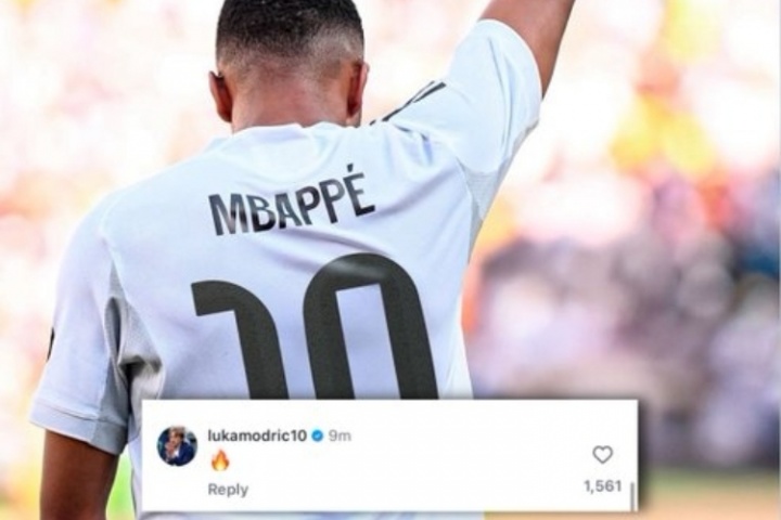姆巴佩在社交媒體上曬出自己身穿10號皇馬球衣的照片,莫德里奇隨后在該條社媒下評論:??