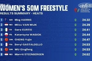 體育資訊8月2日訊 游泳世錦賽結(jié)束女子50米自由泳預(yù)賽爭(zhēng)奪,中國(guó)選手吳卿風(fēng)和程玉潔晉級(jí)半決賽。
