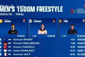 艾哈邁德-焦阿迪決賽中游出了14分34秒41的成績(jī),德國(guó)選手施瓦茨獲得亞軍,美國(guó)名將芬克收獲銅牌。