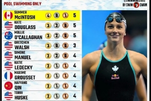 體育資訊8月6日訊 游泳世錦賽結(jié)束全部爭奪,游泳項目個人獎牌榜方面,覃海洋憑借2金1銀1銅的成績,成為唯一上榜的亞洲選手。加拿大選手麥金托什4金1銅領(lǐng)跑該榜單。