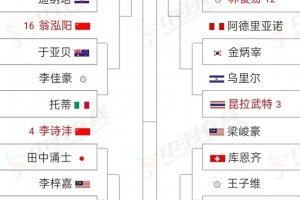 翁泓陽收到對陣于亞貝,他半?yún)^(qū)的主要對手為本賽季狀態(tài)出色的法國選手拉尼爾。