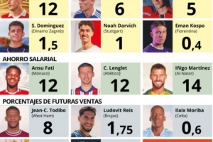 到目前為止,巴薩已經(jīng)在德科的帶領(lǐng)下通過轉(zhuǎn)會、租借、二轉(zhuǎn)分成以及節(jié)省工資等方式入賬近7500萬歐。伊尼戈突然轉(zhuǎn)會利雅得勝利,不僅為巴薩節(jié)省出了約1400萬歐工資,球員還放棄了7月薪水和尚未付清的款項。此外,法蒂外租和朗格萊自由轉(zhuǎn)會馬競也分別為巴薩節(jié)省了1200萬歐年薪。