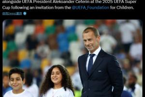 本場(chǎng)比賽,兩名巴勒斯坦難民兒童,受到歐足聯(lián)兒童基金會(huì)邀請(qǐng),與歐足聯(lián)主席切費(fèi)林一起參加賽后的頒獎(jiǎng)儀式。