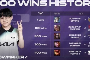 ShowMaker:(400勝里)首先第一場我很緊張,還有在第一個100勝里建敷(Canyon)用豹女收獲了LCK首個打野五殺,有點印象深刻.