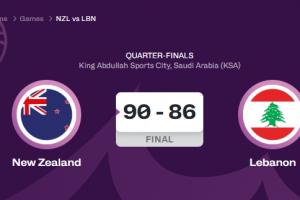 體育資訊08月15日訊 今日2025年男籃亞洲杯1/4決賽,新西蘭男籃開局不利,在比賽中最多時落后22分,但他們最終完成了逆轉,以90-86淘汰上屆亞軍黎巴嫩,殺進四強將對陣中國男籃。