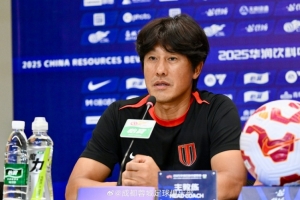 8月15日下午,成都蓉城隊(duì)主教練徐正源和球員德?tīng)柤佣喑鱿速惽靶侣劙l(fā)布會(huì)。在介紹本場(chǎng)比賽的備戰(zhàn)情況時(shí),徐正源表示: