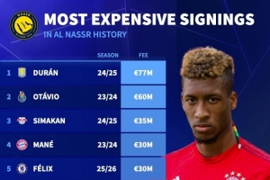 利雅得勝利隊史最貴引援榜: