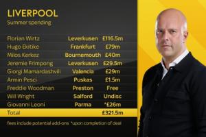 天空體育統(tǒng)計(jì)利物浦今夏轉(zhuǎn)入與轉(zhuǎn)出↓