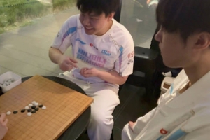 體育資訊8月16日訊 BLG工作人員分享選手動(dòng)態(tài),Elk和shad0w下五子棋,knight當(dāng)裁判,配文: