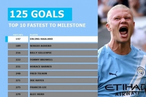 據(jù)媒體統(tǒng)計,哈蘭德加盟曼城以來出戰(zhàn)147場比賽,打進125球,成為曼城歷史上最快達成125球的球員,比第二快的阿圭羅少用42場比賽。