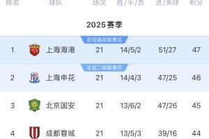 中超第21輪過后,中超榜首易主,上海海港以1分微弱優(yōu)勢領跑積分榜,身后上海申花、北京國安、成都蓉城虎視眈眈,中超冠軍之爭變化莫測!