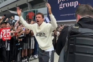 今夏加盟溫哥華白浪的穆勒此役將擔(dān)任替補(bǔ),俱樂(lè)部社媒曬出他抵達(dá)球場(chǎng)的視頻,這位德國(guó)傳奇球星受到球迷的熱烈歡迎。