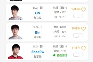 體育資訊8月19日訊 LPL第三賽段BLG不敵iG后,今日Bin上線打了一把單排就下線了,Shad0w連續(xù)打了三把,而中下輔的Rank記錄最后均在8月17日凌晨。