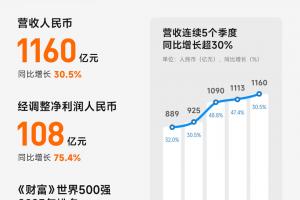 -營收 1160 億元同比增長 30.5%(上年同期 888.9 億元)創(chuàng)歷史新高。