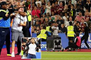 社交媒體用戶稱,當(dāng)藍(lán)軍攻入本場第五球后,有一名年輕的西漢姆球迷成功闖入球場。在主隊(duì)遭遇恥辱之夜的同時(shí),數(shù)千名憤怒的西漢姆球迷被拍到提前離場。