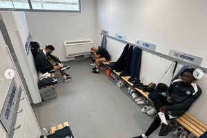 長(zhǎng)凳上方的名牌標(biāo)注著奇爾維爾、楚克烏梅卡、烏戈丘庫(已轉(zhuǎn)會(huì)伯恩利)及迪薩西的名字,明確了該區(qū)域使用者。更引人注目的是吉爾克里斯特,照片中他雙手抱頭頹坐角落。