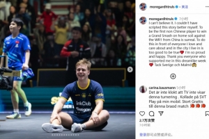 賽后,莫雷加德更新社媒慶祝這個(gè)來之不易的冠軍。莫雷加德寫道:難以置信!我簡直不敢相信這個(gè)故事能如此完美。成為首位在主場擊敗世界排名第一的中國選手,贏得大滿貫賽事的非中國選手,這種感覺太不真實(shí)了。在我所愛和關(guān)心的人面前,在我生活的城市中取得這樣的成就,簡直像做夢一樣?? 我感到無比自豪和快樂。感謝所有在這夢幻般的一周里支持我的人?? 感謝瑞典和馬爾默的支持??。