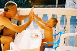 東契奇曬出一張自己兒時(shí)與家中長(zhǎng)輩擊掌的照片,并只配文了????的表情。