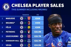 據(jù)德轉(zhuǎn)統(tǒng)計,切爾西今夏賣人總收入將達(dá)到3.165億歐元,冠絕全球,比賣人榜第二位的伯恩茅斯多了近8000萬歐元。