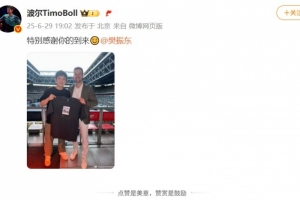 波爾今天更新了社媒,向樊振東表示感謝。波爾曬出了兩人的合照,并配文寫道:特別感謝你的到來。
