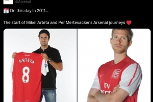 體育資訊8月31日訊 在2011年的今天,現(xiàn)任球隊主帥阿爾特塔以及默特薩克開啟了槍手生涯,阿森納官推也曬出兩人當時的照片作為紀念。